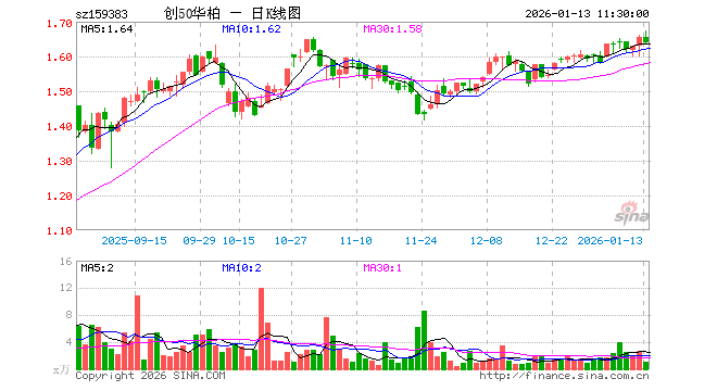 1月13日,截止午间收盘,创业板50ETF华泰柏瑞(159383)跌0.85%,报1.640元,成交额168.05万元。创业板50ETF华泰柏瑞(159383)重仓股方面,宁德时代截止午盘涨0.24%,中际旭创跌0.68%,东方财富跌0.84%,新易盛跌1.91%,阳光电源跌1.76%,胜宏科技跌1.65%,汇川技术跌2.12%,迈瑞医疗涨0.81%,亿纬锂能跌0.53%,同花顺涨2.39%。